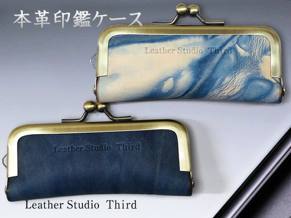 本革 牛革 天然藍 がま口 印鑑ケース 【海&空セット】 9mmまで はんこ 福山レザー ハンドメイド プレゼント ゆうパケット 送料無料