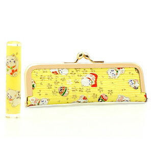 送料無料◆印鑑・はんこ/おしゃれはんこ/がまぐちケースセット/招き猫 イエロー系/和紙柄/W-49(60x12mm)/銀行印・認印[印鑑 銀行印 認め印/ハンコ/判子/がま口印鑑ケース付き セット/かわいい/女性 子供向け/ギフト プレゼント お祝い/名前]