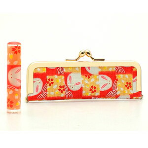 送料無料◆印鑑・はんこ/おしゃれはんこ/がまぐちケースセット/うさぎ/和紙柄/W-61(60x12mm)/銀行印・認印[印鑑 銀行印 認め印/ハンコ/判子/がま口印鑑ケース付き セット/かわいい/女性 子供向け/ギフト プレゼント お祝い/名前]