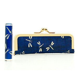送料無料◆印鑑・はんこ/おしゃれはんこ/がまぐちケースセット/トンボ柄 ブルー系/和紙柄/W-75(60x12mm)/銀行印・認印[印鑑 銀行印 認め印/ハンコ/判子/がま口印鑑ケース付き セット/かわいい/女性 子供向け/ギフト プレゼント お祝い/名前]